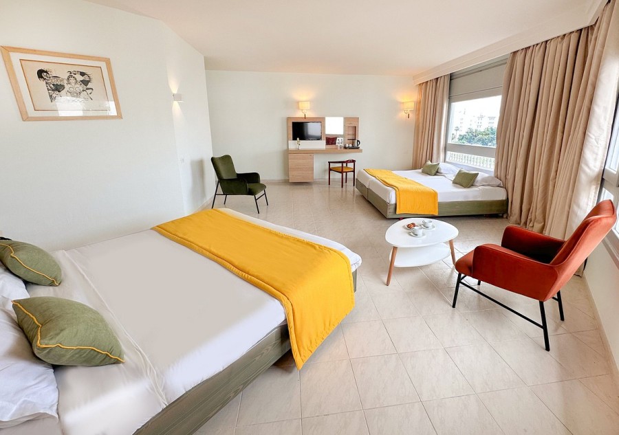 Le camere del Sol Azur Beach Hammamet sono dotate di una TV a schermo piatto con canali satellitari, nonché di un mini frigobar per la tua comodità. Dispongono anche di bagni privati con asciugacapelli e accappatoi. I bagni sono dotati di una doccia, inoltre sono provvisti di asciugacapelli e accappatoi.